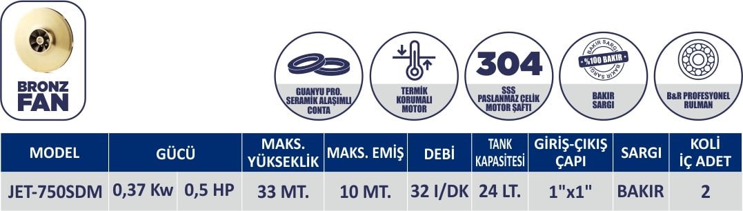 TANKLI JET-SDM SERİSİ BAKIR SARGILI 24 TANKLI SANTRİFÜJ POMPA JET-750SDM+24L